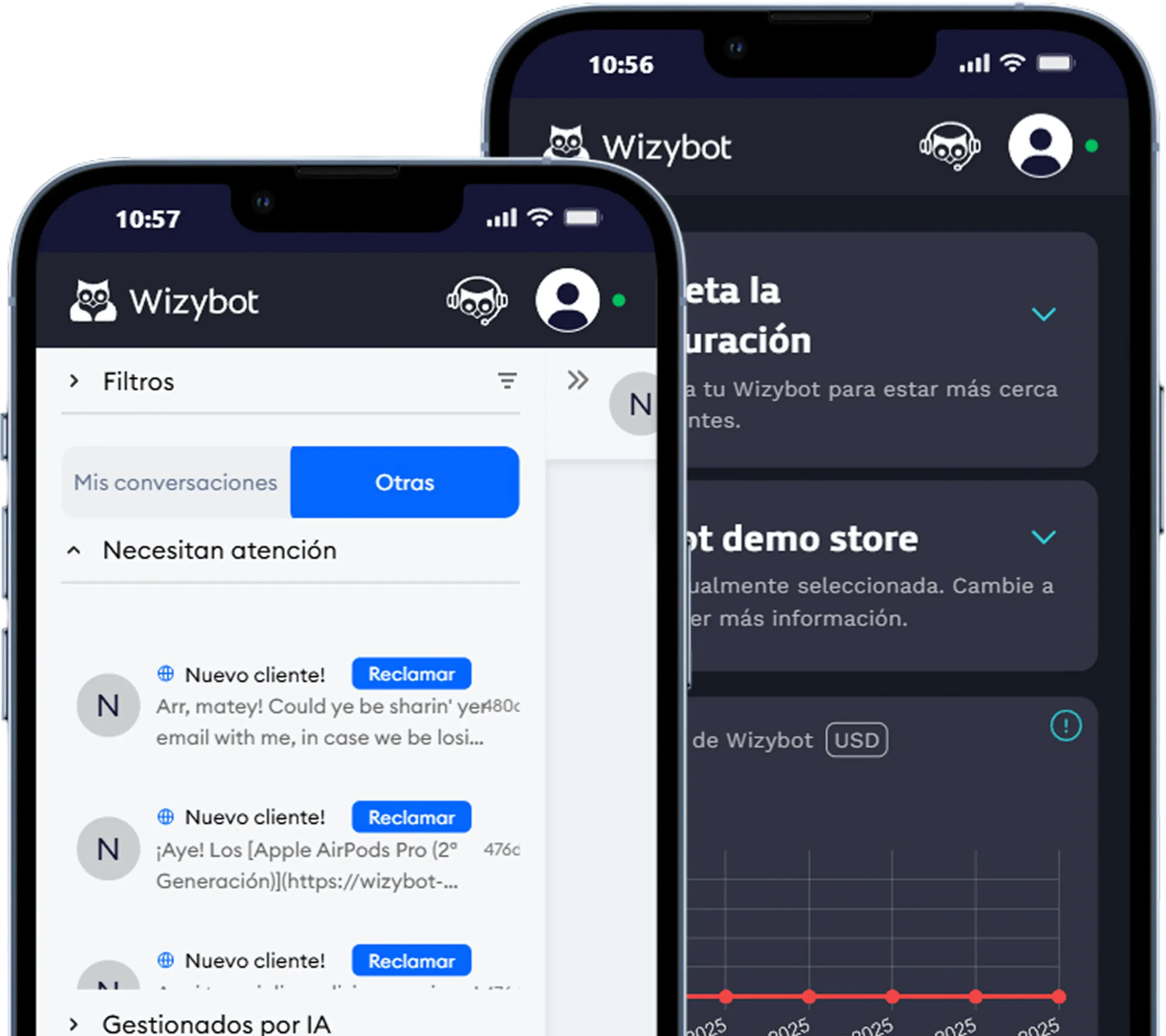 Conoce Wizybot, el Chatbot de IA para e-commerce, resuelve el 96% de consultas, unifica canales de chat y aumenta tus ventas 24/7 en más de 90 idiomas.
