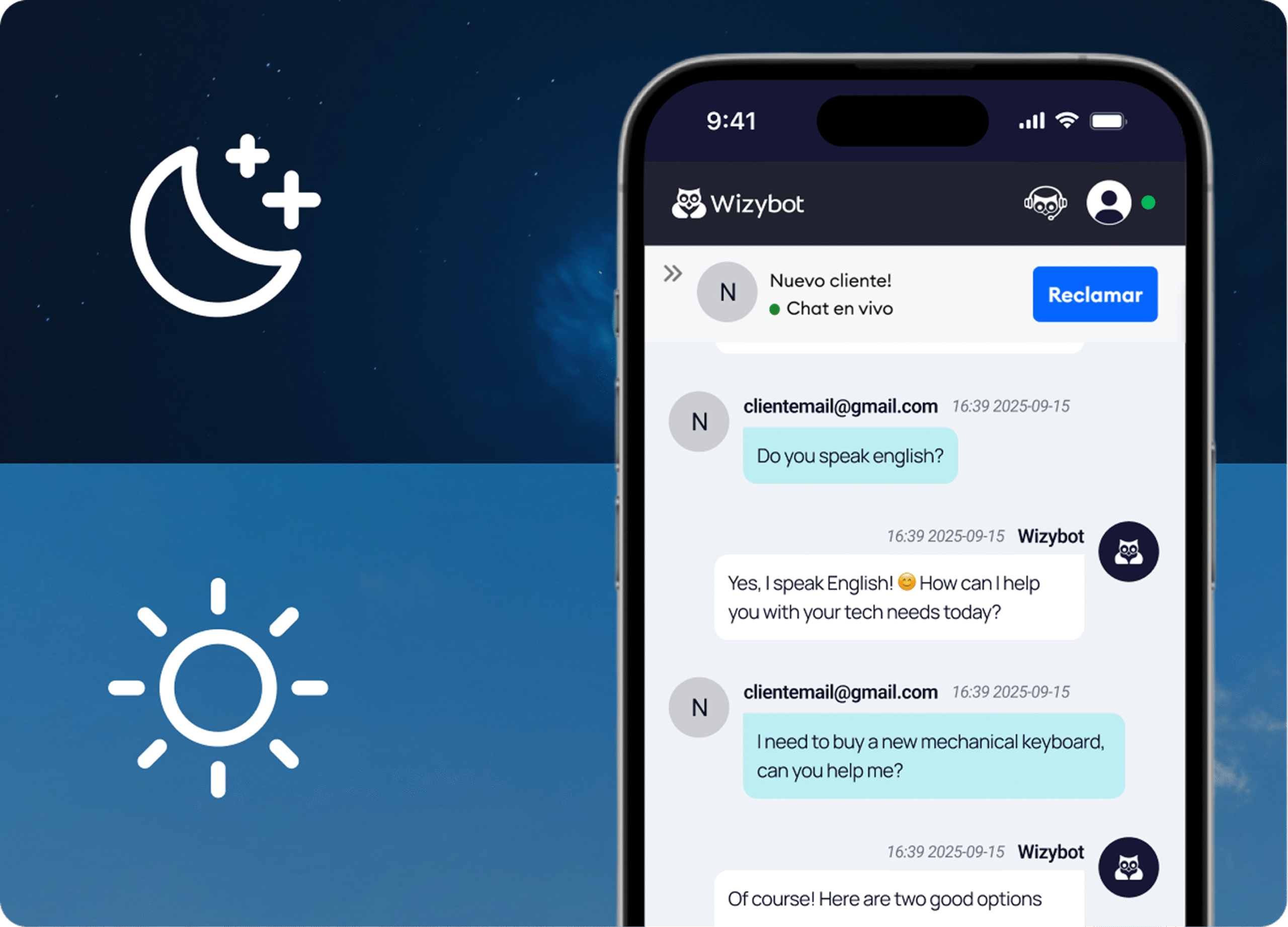 Un Chatbot de IA para ecommerce que responde día y noche, gestionando solicitudes globales en múltiples idiomas sin interrupciones.